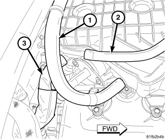 2. Install lower intake manifold (3) and fuel rail (1) Intake Manifold - Installation.