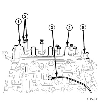 1. Position sensor (3) to engine. Install and tighten mounting bolt to 10 Nm (7 ft. lbs.). Note foam strip on bolt threads. This foam is used only to retain the bolt to sensor for plant assembly. It is not used as a sealant. Do not apply any adhesive, sealant or thread locking compound to this bolt.