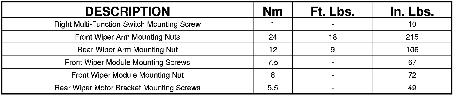 Wiper and Washer Systems: Specifications
