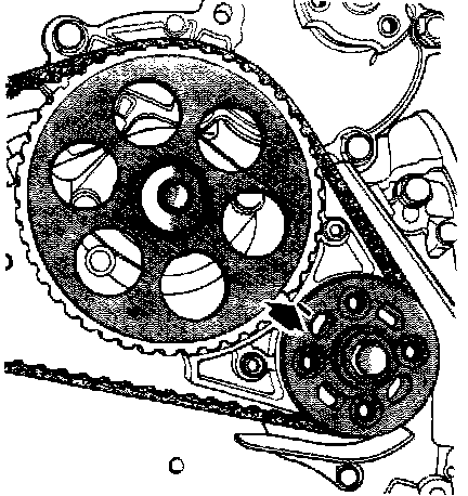 Fig. 16 Aligning timing mark on camshaft sprocket: