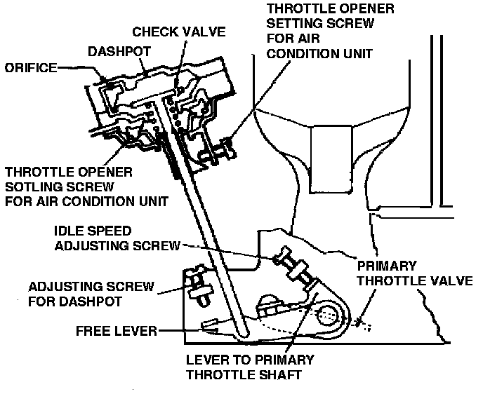 Lift free lever by hand until it contacts dash pot adjusting screw and adjust engine RPM by dash pot adjusting screw to set speed of 2,000 ± 1OO RPM.