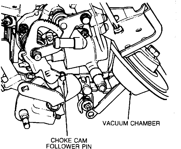 Fast idle speed is adjusted by turning the fast idle speed screw on the under side of the primary throttle lever (Figure 3).