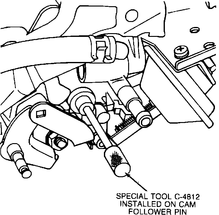 5. Open throttle and install special tool C-4812 on the choke cam follower pin (Figure 2A & B).