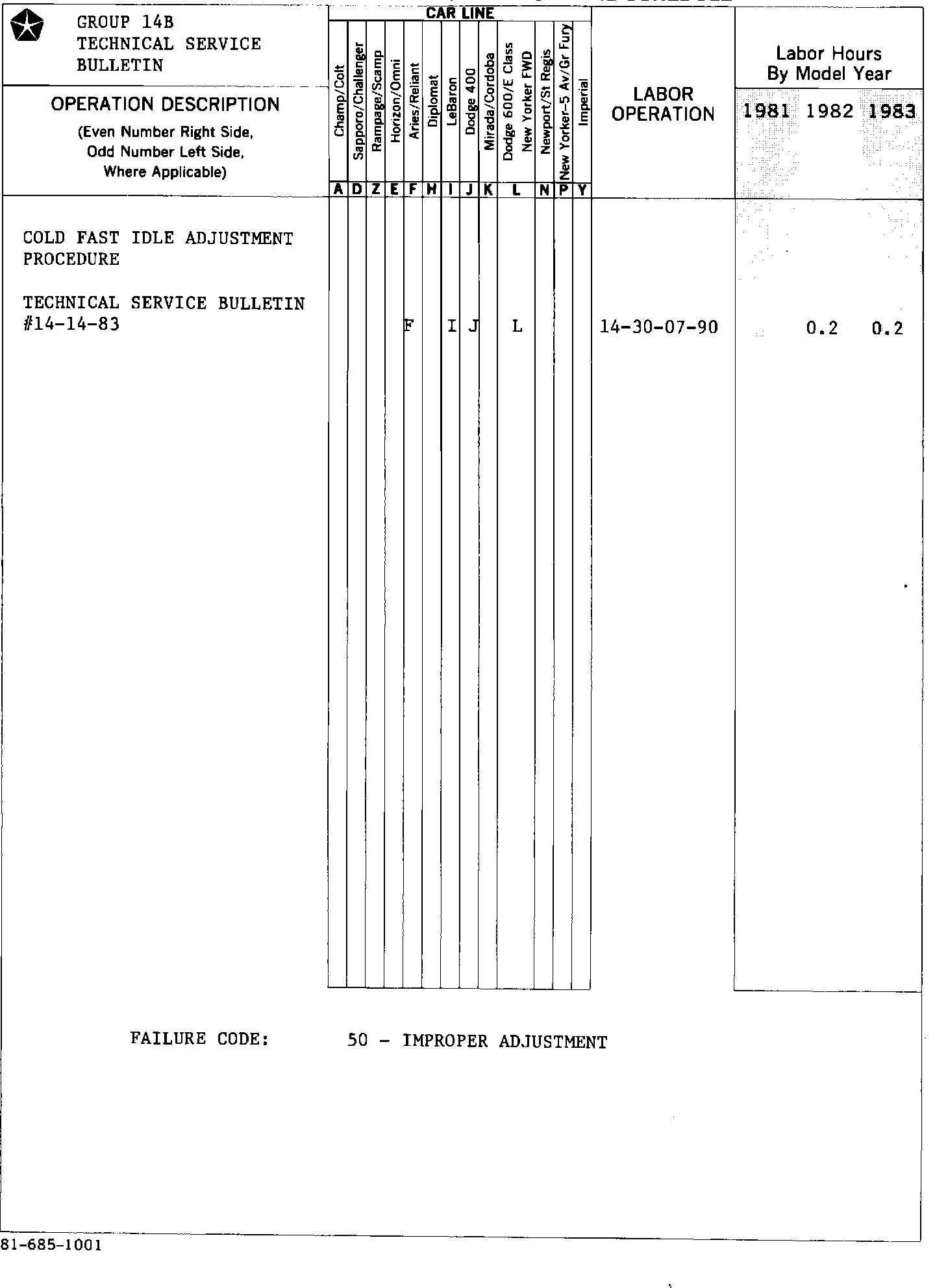 NOTE: This cold fast idle adjustment procedure applies only to vehicles with the following engine part numbers (last three digits):