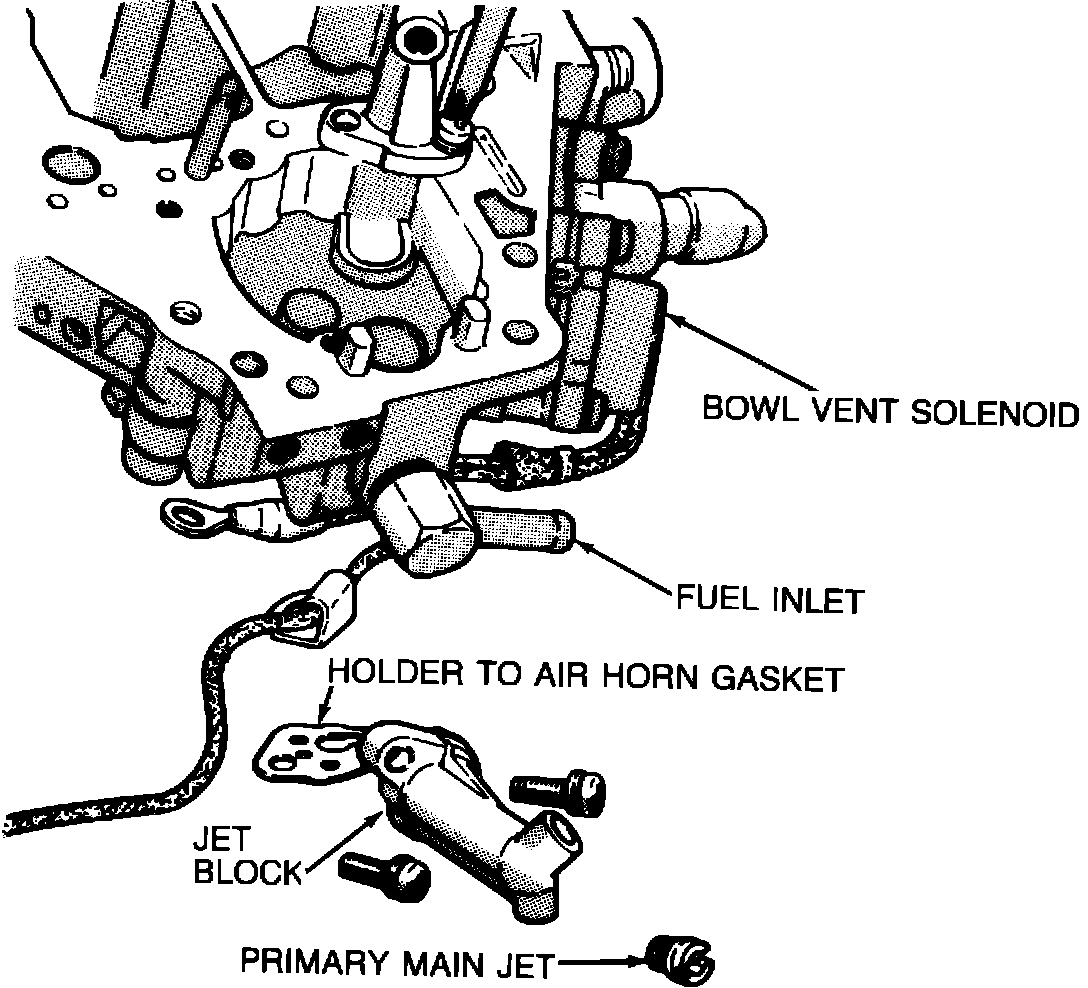4. Remove the four (4) hold-down bolts that pass through carburetor, then remove carburetor for disassembly.
