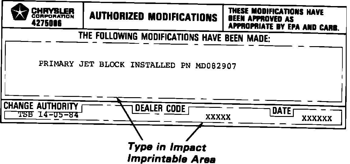 1 - Authorized Modification Label PN 4275086