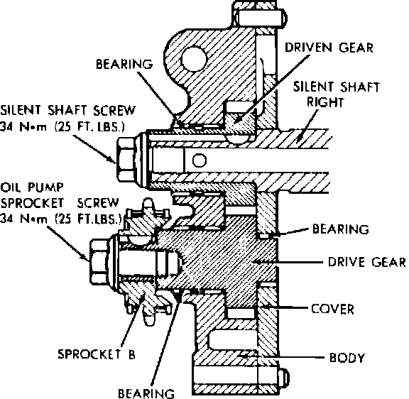 Fig. 16 Oil pump & Silent Shaft, removal: