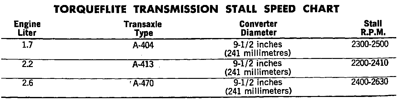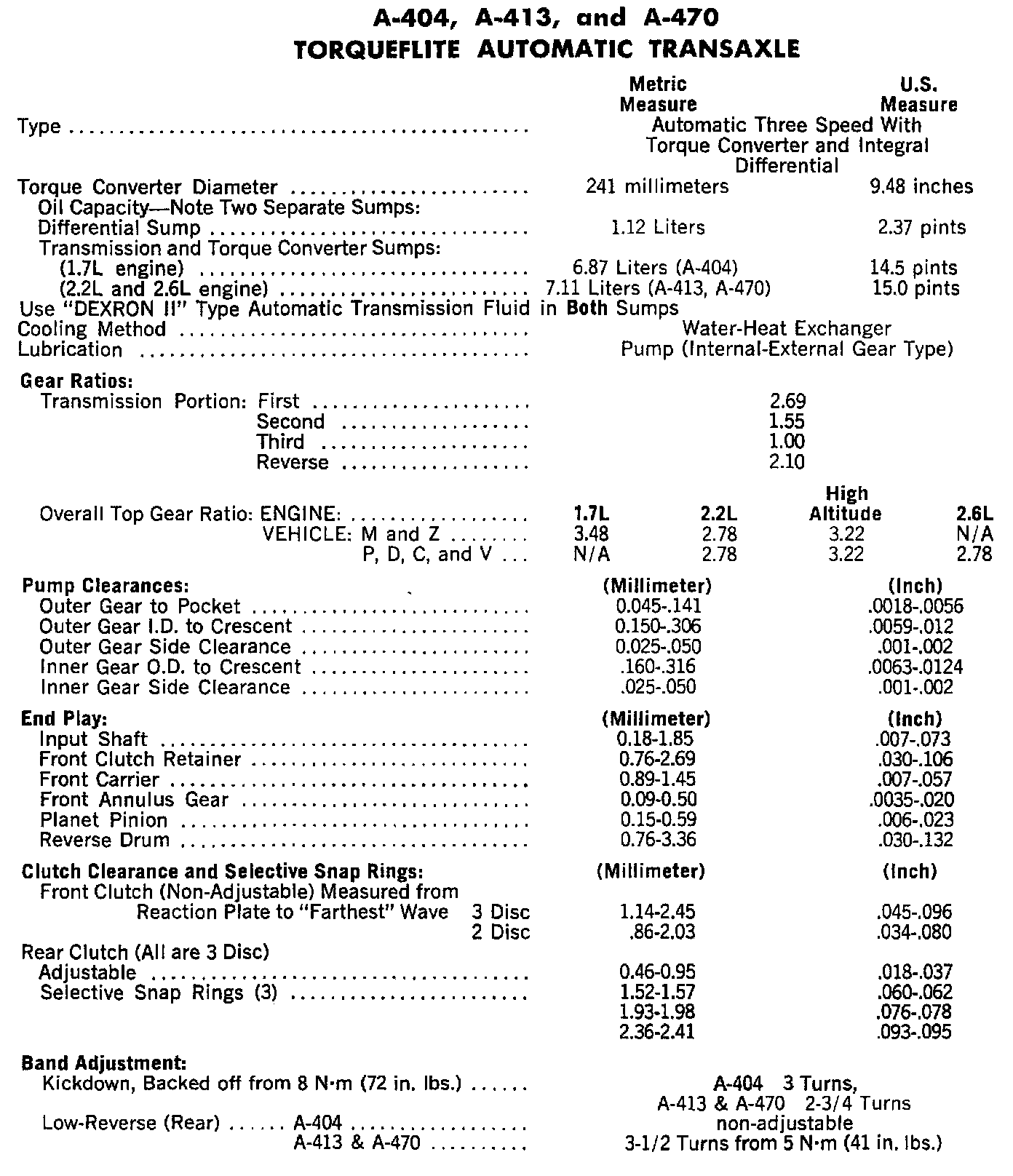A-404, A-413, A-470, Torqueflite Automatic Transaxles