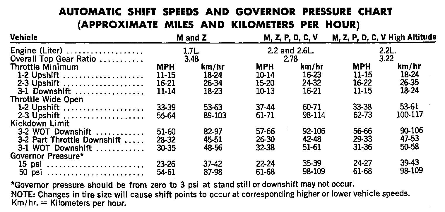 Shift Speeds And Governor Pressure Chart: