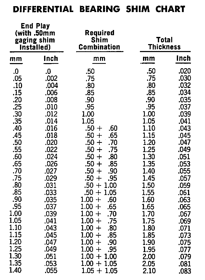 Differential Bearing Shim Chart:
