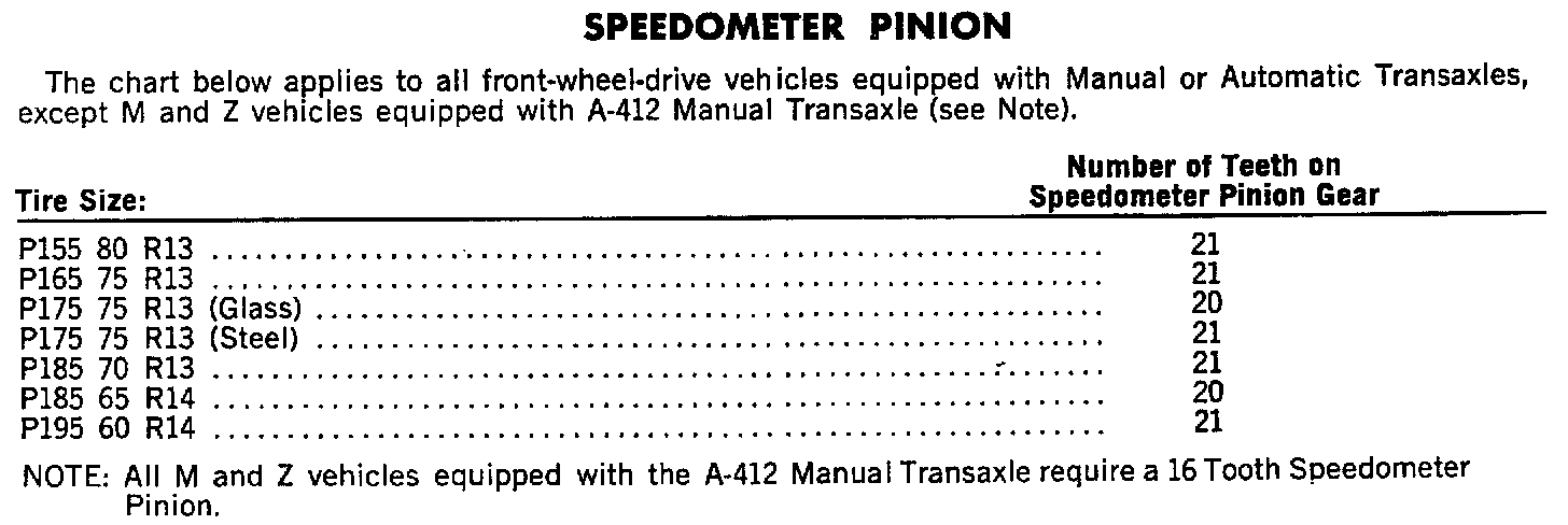 Speedometer Pinion Specifications: