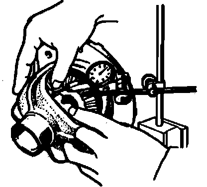 5. With the drive pinion shaft aligned with the drive pinion shaft lock pin hole in the differential case, drive the lock pin into the hole from the back side of the ring gear. Securely stake the lock pin at two places with a punch to prevent its dislocation.