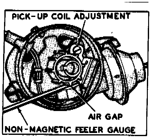 5. To set air gap on run pick up of dual pick up distributors, first adjust start pick up as described in step 5, then adjust run pick up as describe in step 5. Use a 0.012 inch non-magnetic feeler gauge to adjust run pick up air gap.