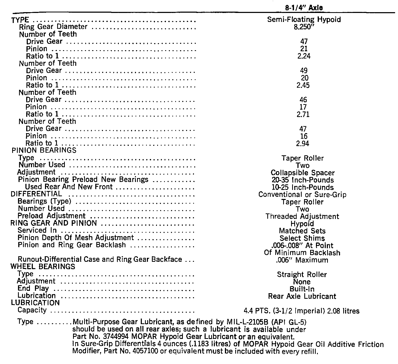 8-1/4" Axle Specifications: