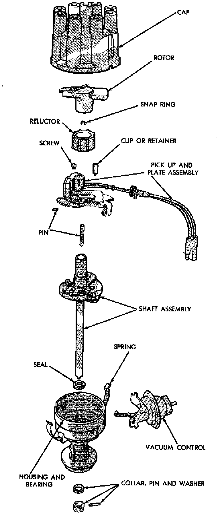 5. On eight cylinder units, if distributor housing, shaft, reluctor sleeve or governor weights are to replace, proceed as follows: