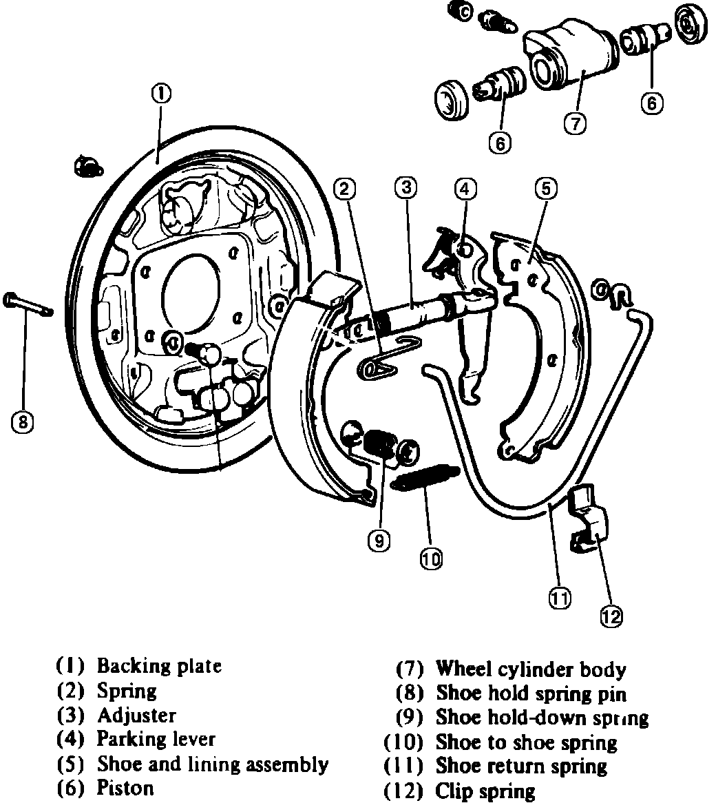 Fig. 1 Rear Drum Brake Assembly Exploded View - Colt: