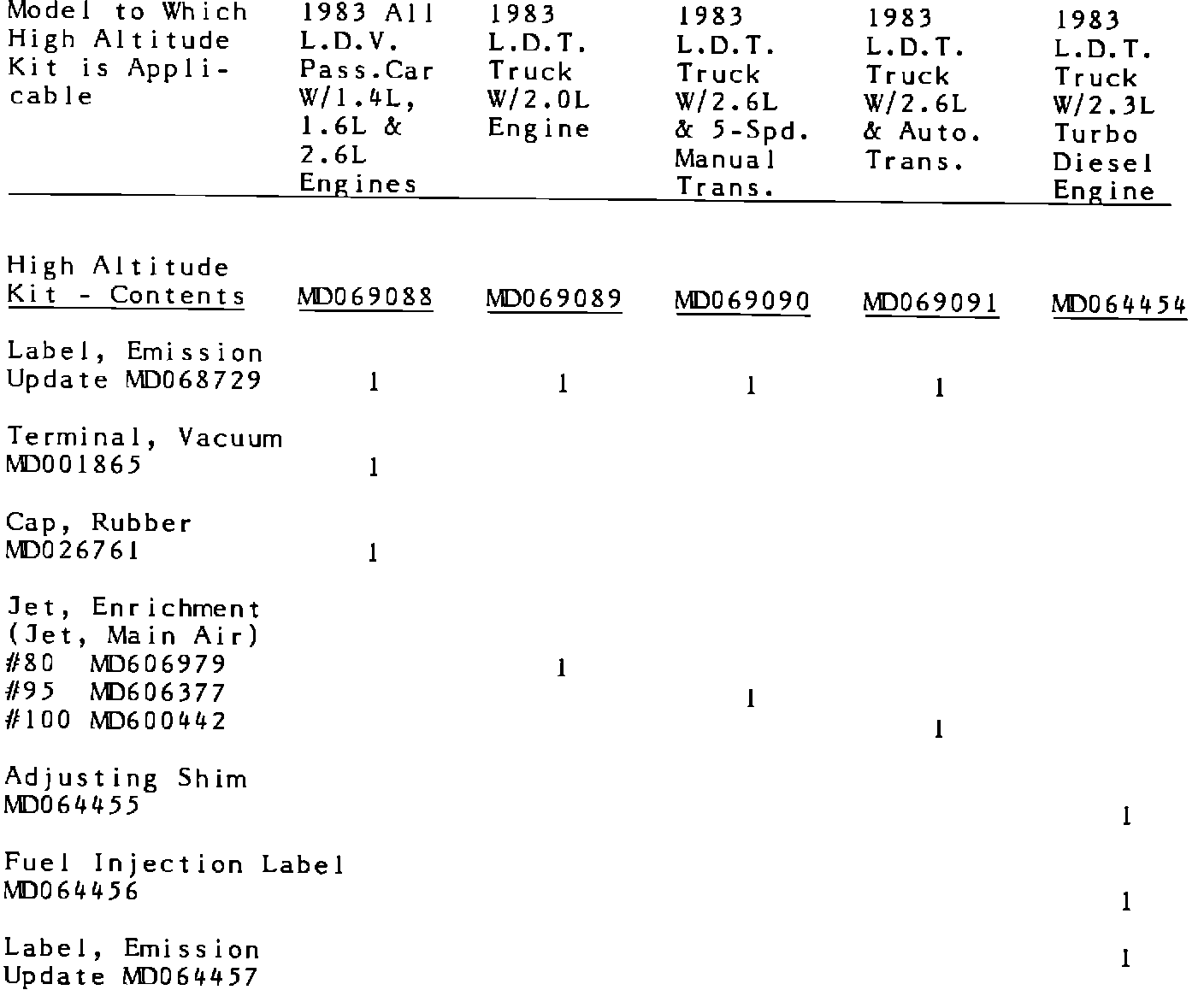 NOTE: THIS CONVERSION PROCEDURE IS NOT APPLICABLE TO CALIFORNIA VEHICLES WHICH HAVE A HIGH ALTITUDE COMPENSATION SYSTEM AS STANDARD EQUIPMENT.