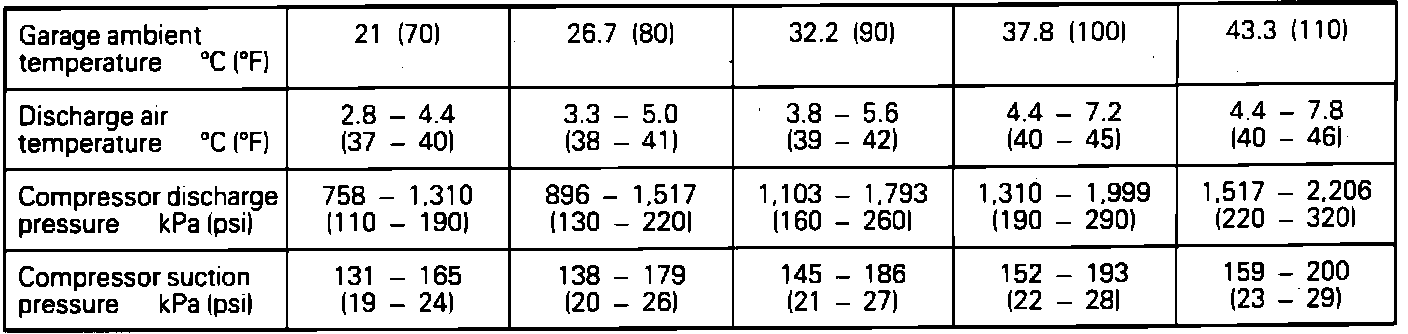6. Note the discharge temperature and compare with chart. Reading should be taken with compressor clutch engaged.