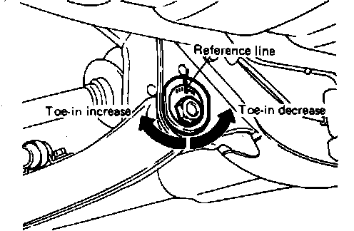 Toe-in is adjusted by rotating the lower control arm mounting bolts as follows: