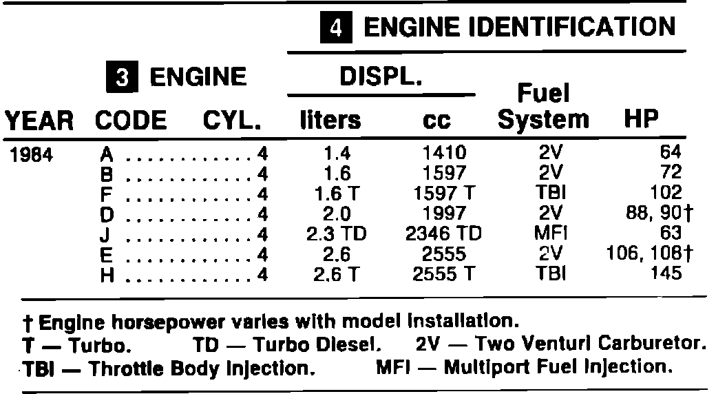 ENGINE IDENTIFICATION 1984: