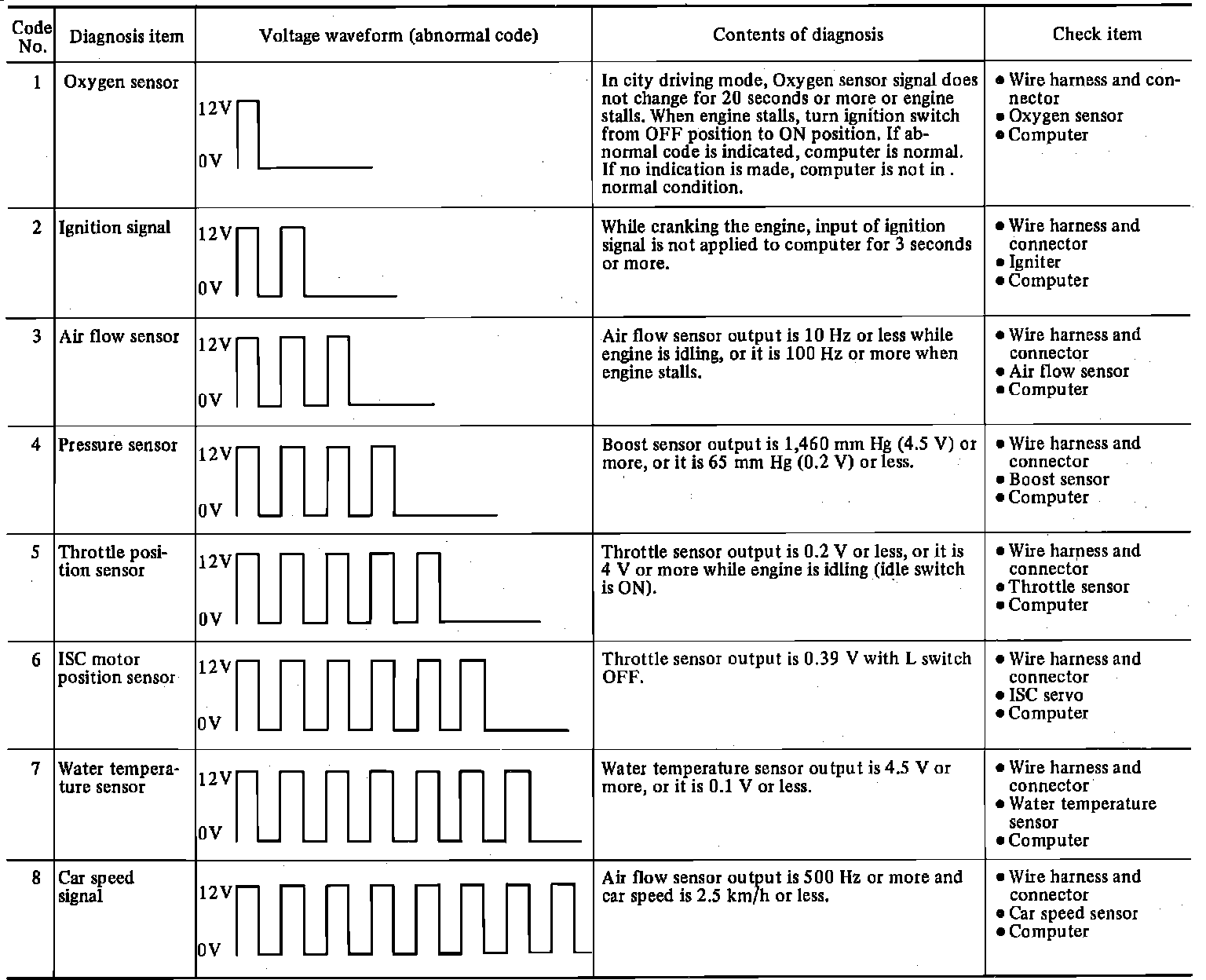 Input Signal Diagnosis Chart