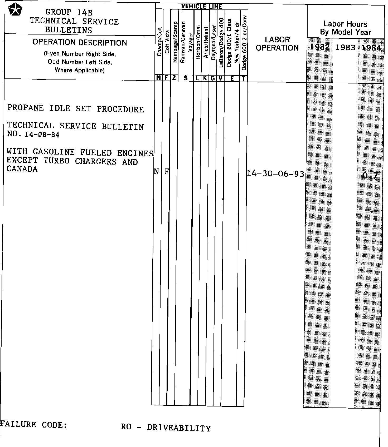 The propane idle set procedure is authorized for 1984 subject model import vehicles.