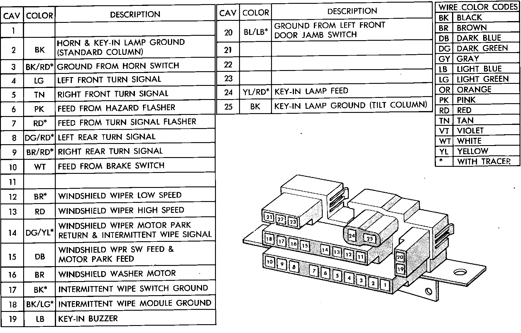Fig. 8 Instrument Panel To Steering Column (25 Way). 1984: