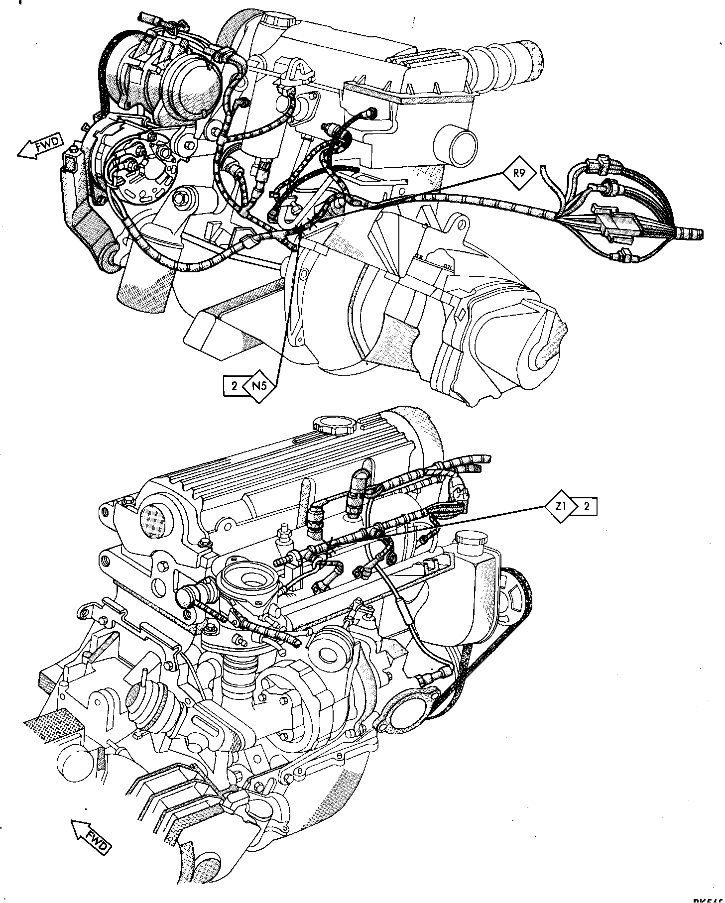 Fig. 108 Splice Location (Engine). 1985 W/2.2 Litre Turbo Engine: