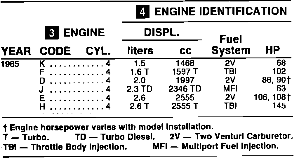 2 ENGINE CODE LOCATION: 8th character of V.I.N.