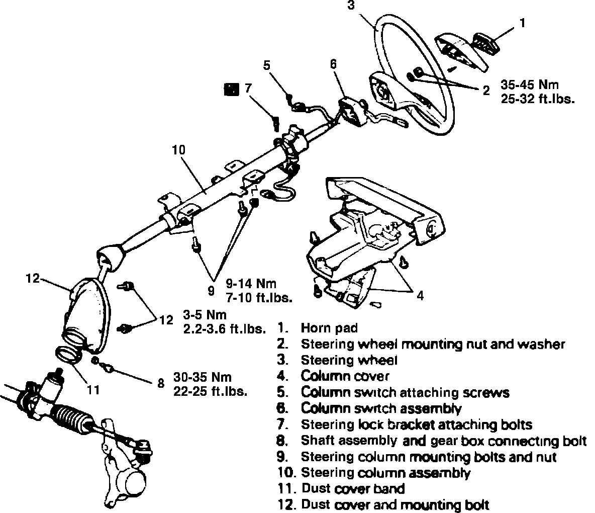 Fig. 2 Exploded view of steering column assembly. 1985-86 Colt: