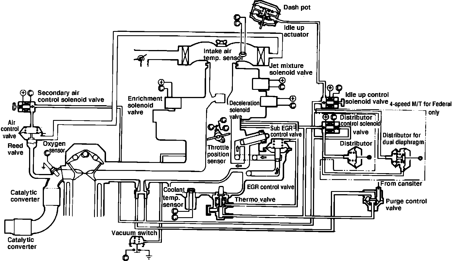 Electronic feedback carburetor system (typical). 1984-86 models: