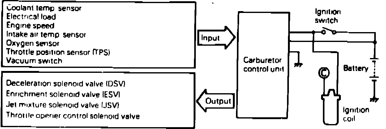 The Electronic Feedback Carburetor system controls emissions by close regulation of air/fuel ratios. Carburetor operation is controlled by an electronic control unit (computer). The computer monitors engine and vehicle operating conditions through a series of sensors and actuators to determine ideal fuel/air mixtures.