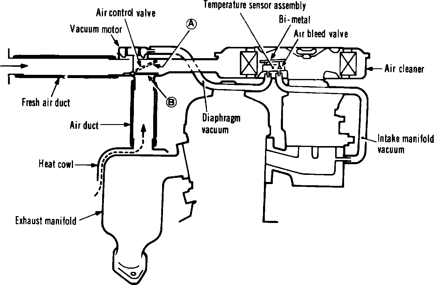 1. Check that heat cowl to air cleaner and all vacuum hoses are properly attached and in good condition.