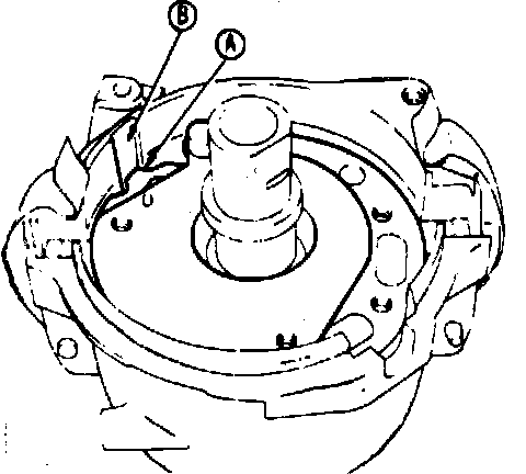 5. Insert signal rotor shaft into distributor shaft, then the breaker plate into housing. Tighten breaker plate retaining screws. Install breaker plate ensuring projection A is engaged with groove B, Fig. 16.