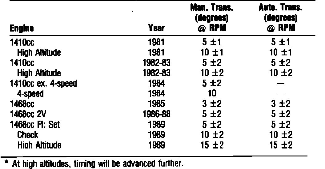 TIMING SPECS 1400cc & 1500cc: