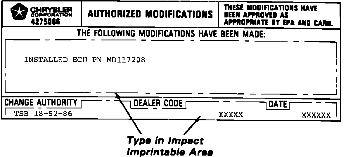 Remove old ECU and install the new ECU, PN MD117208, according to the service manual procedure.