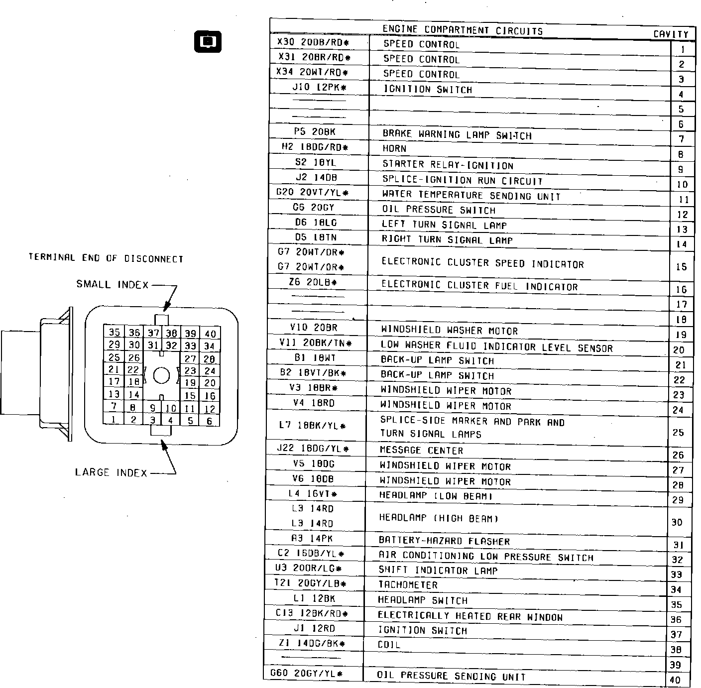 Fig. 4 Bulkhead Connector (40 Way, Engine Side). 1985: