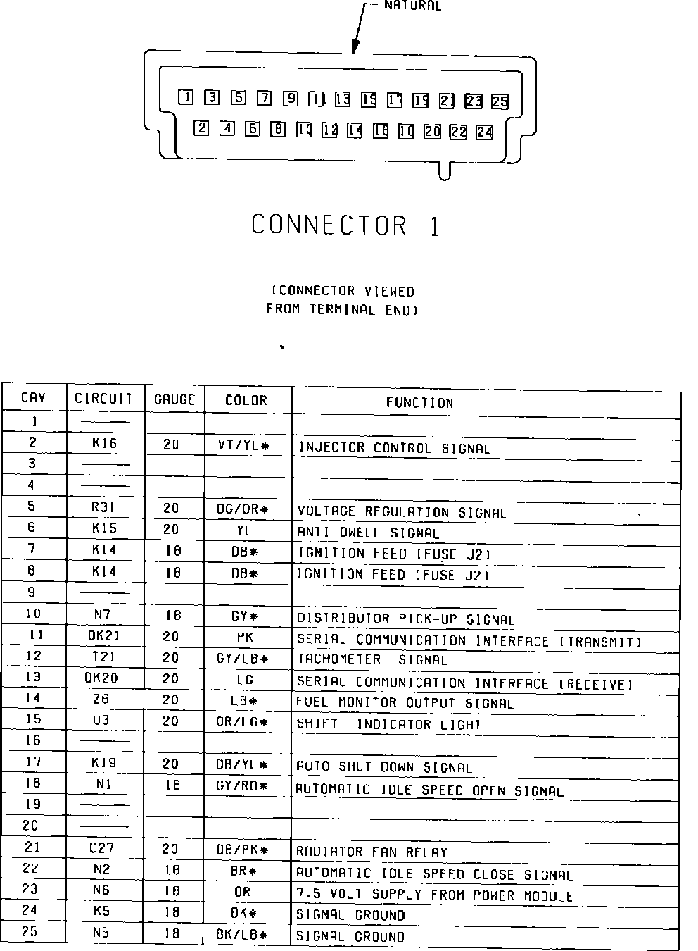 Logic Module Connector (Throttle Body EFI, Part 1 of 2). 1985: