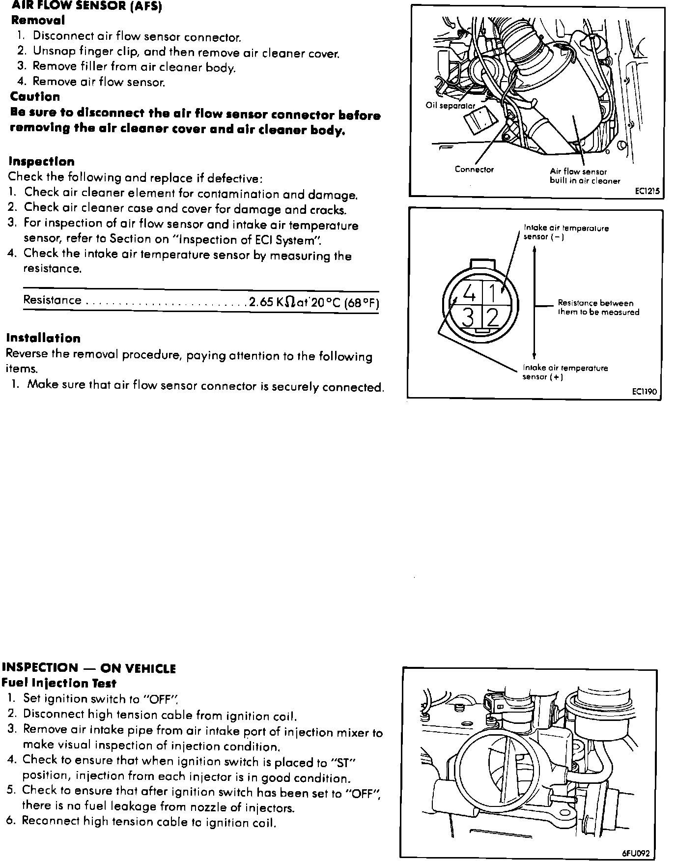Idle Speed/Air Flow Sensor - Manual Revisions