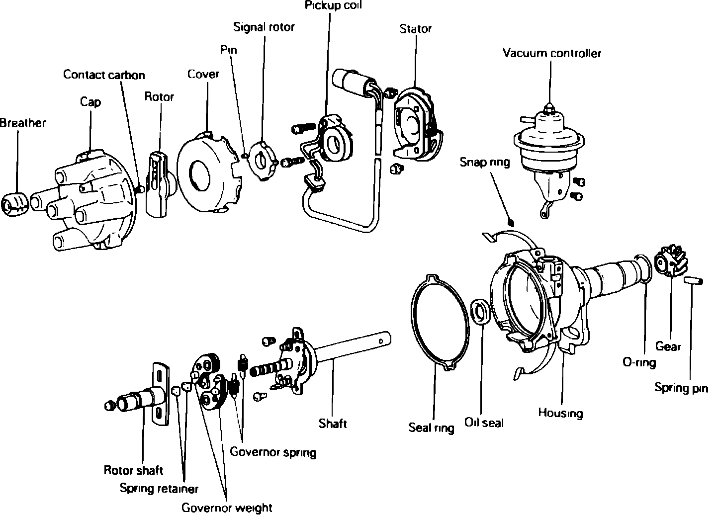 Fig. 20 Exploded view of distributor. 1986 Colt w/1600cc turbocharged engine: