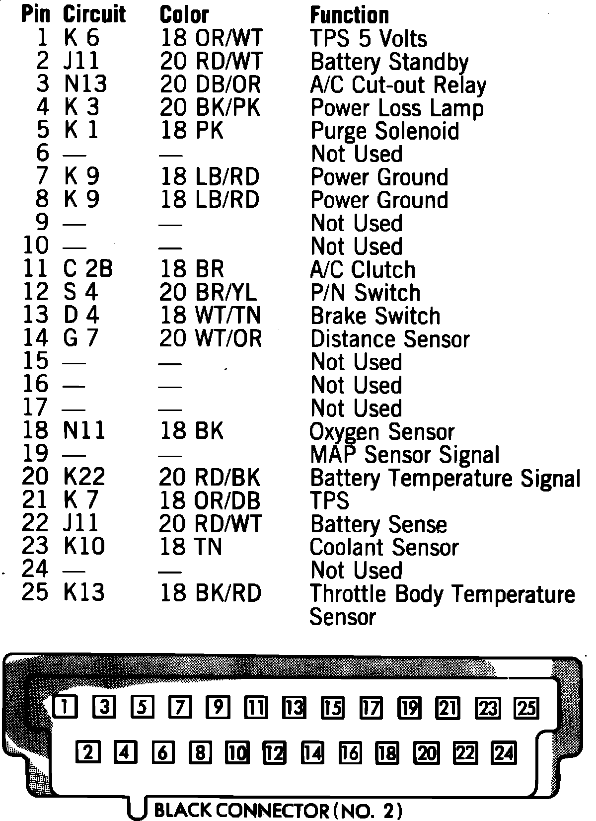 Fig. 9 Logic module black connector terminal identification. 1986 models: