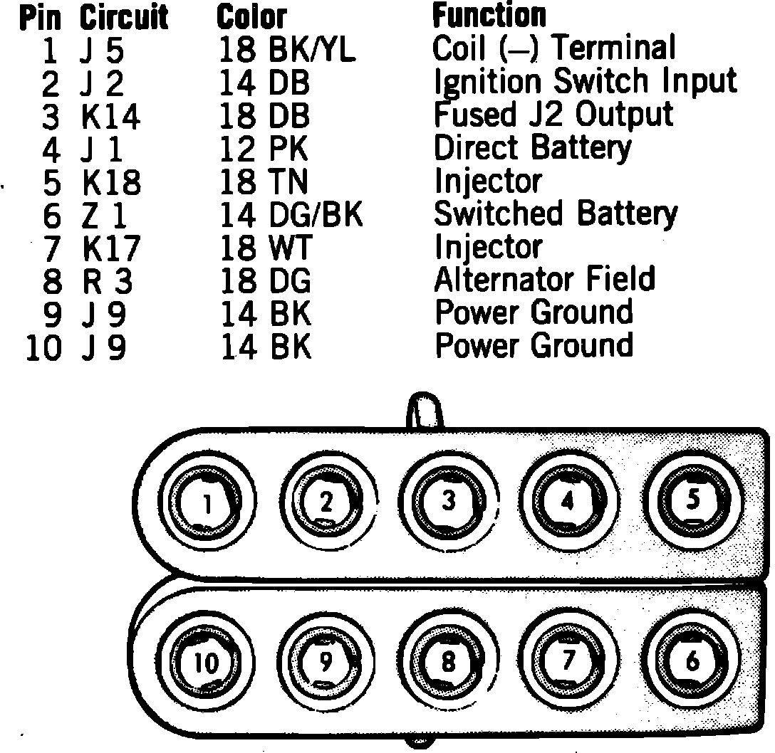 Fig. 11 Power module 10 pin connector terminal identification. 1986 models: