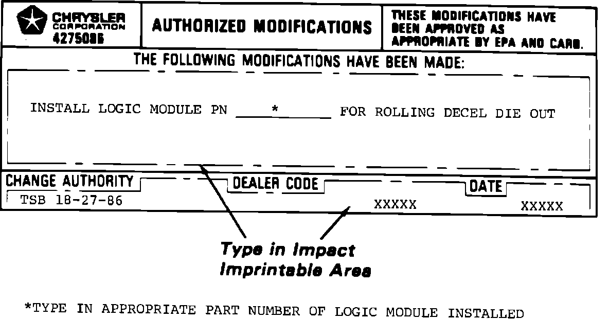 2 Type Authorized Modification Label, PN 4275086, as shown in Figure 1 and attach near VECI label.