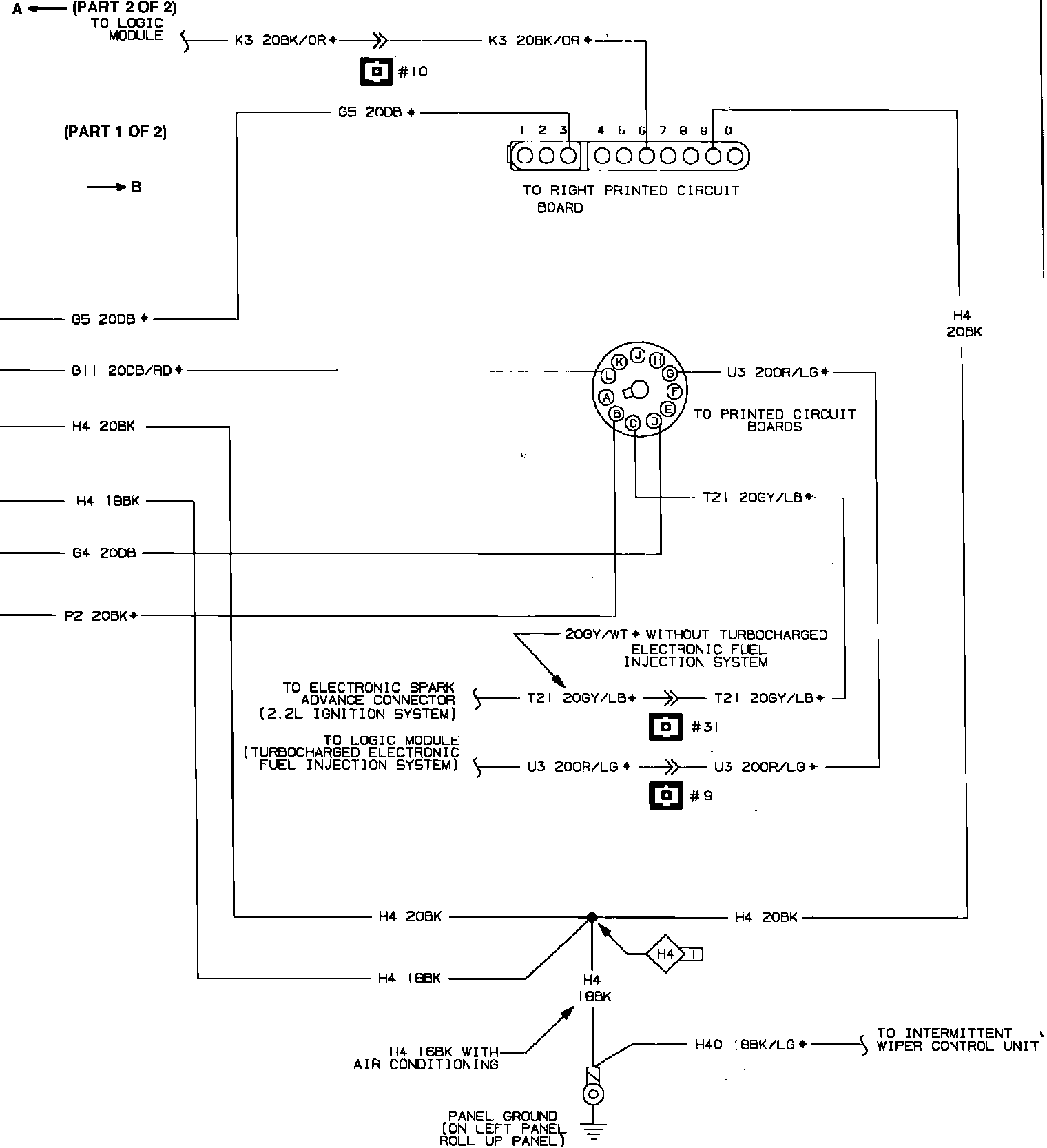 Fig. 13 Brake Switch, Fuel Gauge, Seatbelt Warning System & Tachometer System Wiring Circuit -- Part 2:
