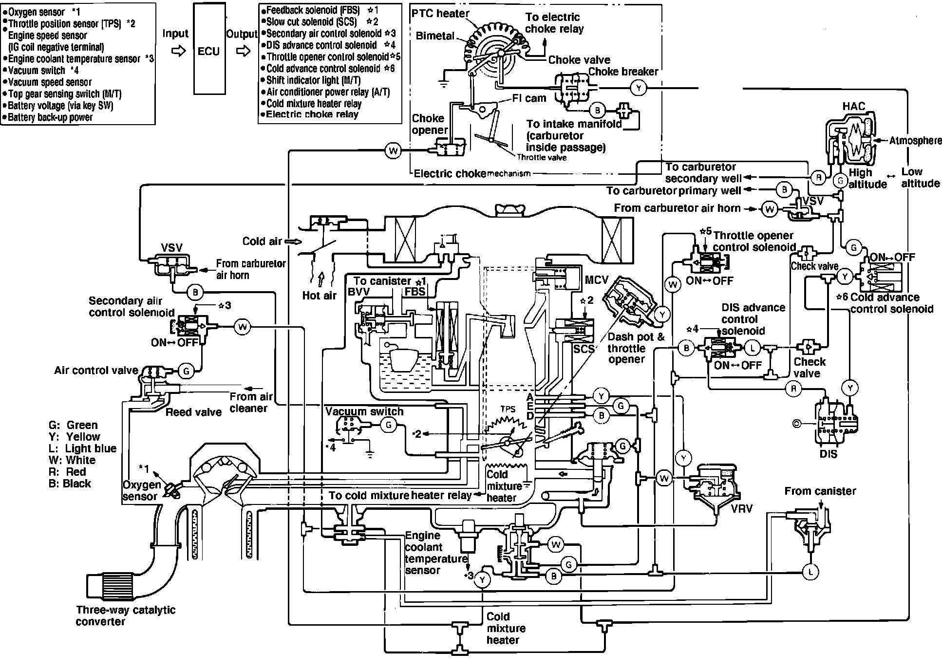 The Electronic Feedback Carburetor system controls emissions by close regulation of air/fuel ratios. Carburetor operation is controlled by an electronic control unit (computer). The computer monitors engine and vehicle operating conditions through a series of sensors and actuators to determine ideal fuel/air mixtures.