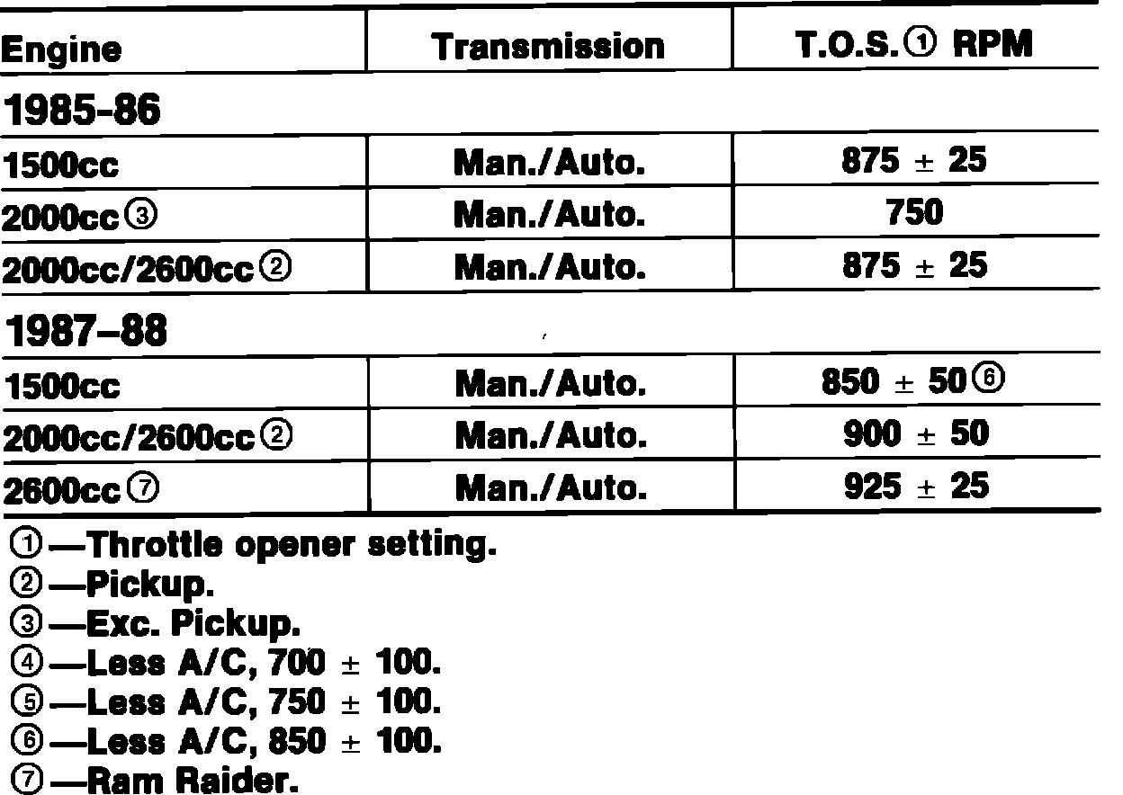 Fig. 8 Idle-up adjustment specifications chart:
