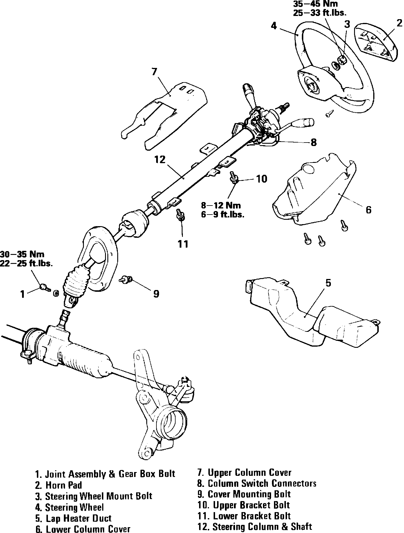 Fig. 5 Exploded view of steering column assembly. 1987-88 Colt Vista: