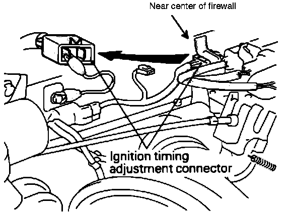 8. Reconnect ignition timing adjusting connector which was grounded in Step #4. Restart the engine and ensure ignition timing advances to actual ignition timing. Actual ignition timing = 10° BTDC (15° BTDC at high altitudes.)