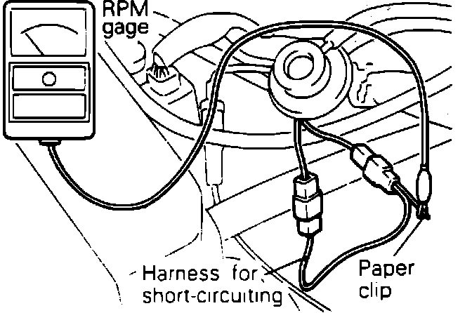 2. Insert a paper clip in the connector (1 pin) of the harness and connect the rpm gauge.