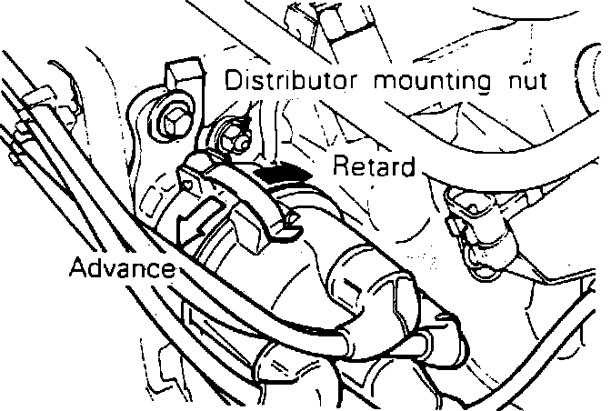 6. To adjust ignition timing, loosen distributor mounting nut and turn distributor housing.